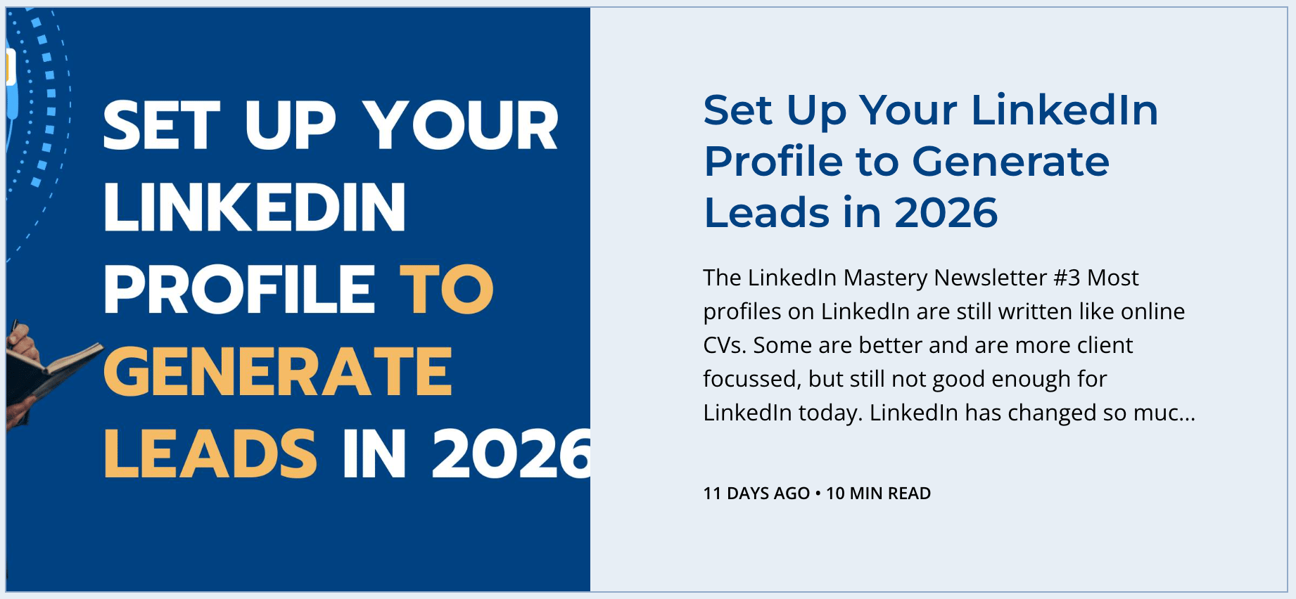 Join 4,000+ readers of LinkedIn Mastery for tips, strategies, and resources to use LinkedIn to grow your service, coaching or consulting business.